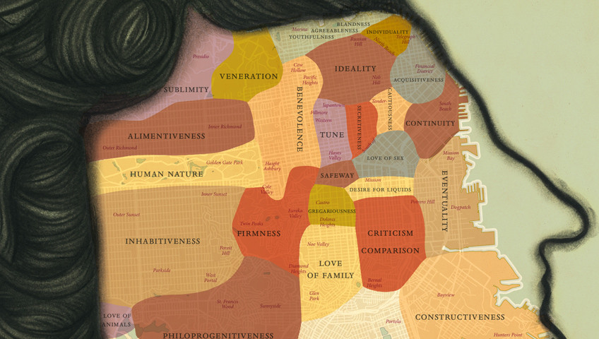 And this is how the book works. The “arbitrary selection of facts” are surprising and unconventional. There are maps of industries and bee migrations and “tribal neighborhoods” and gang-lands and right-wing bastions and bygone areas of entertainment and carousal.  And the pairings are both startling and sensible. For instance, the map entitled “Poison/Palate: The Bay Area in your Body” is accompanied by Solnit’s essay “What Doesn’t Kill You Makes You Gourmet.” In both, the reader is given a map of the major dumpers of toxins into the environment (often food and wine growers) and the sites of delicious, food providers. (Often the two overlap.) The key to the map gives symbols for EPA SUPERFUNDS, Poison Sites, Palate Sites, Poison/Palate Sites and Wineries.