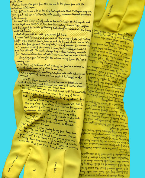 Jessica Deane Rosner’s Text of Ulysses on yellow rubber gloves.